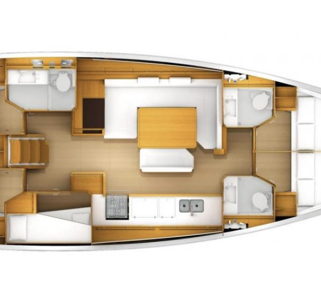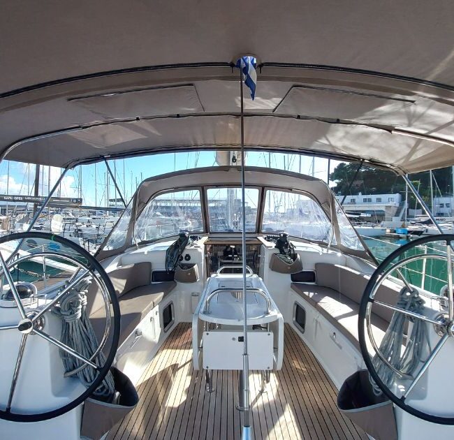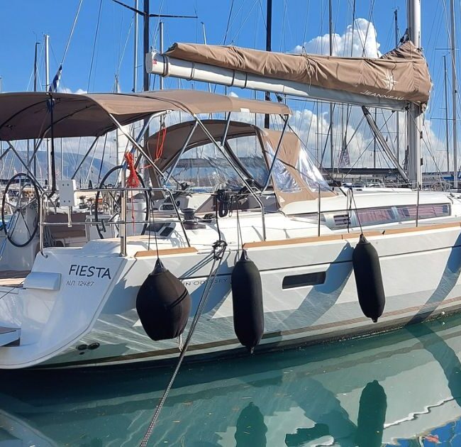 Set sail aboard FIESTA, a stylish 15-meter Sun Odyssey 519 designed by Philippe Briand and built by the iconic Jeanneau shipyard. Accommodating up to 12 guests in 5 comfortable cabins plus a skipper’s cabin, she offers a bright saloon, a fully equipped galley, and generous outdoor spaces. Easy to handle thanks to twin steering wheels and a spacious cockpit with a large table she is the perfect yacht for unforgettable cruises in the Ionian Sea and the Peloponnese.