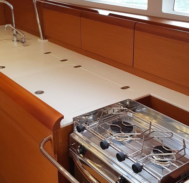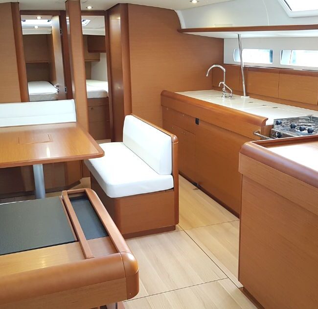 The technically well-equipped LUCIA contains Water maker(100lit/h), Autopilot, Bow thruster, Chart plotter, Electric toilet, Inverter, Radio-CD player, Refrigerator and Coffee maker. Furthermore this sailing yacht is equipped with Bimini, Cockpit cushions, Dinghy, Outboard engine, Solar Panels, Sprayhood and Stand up paddle.