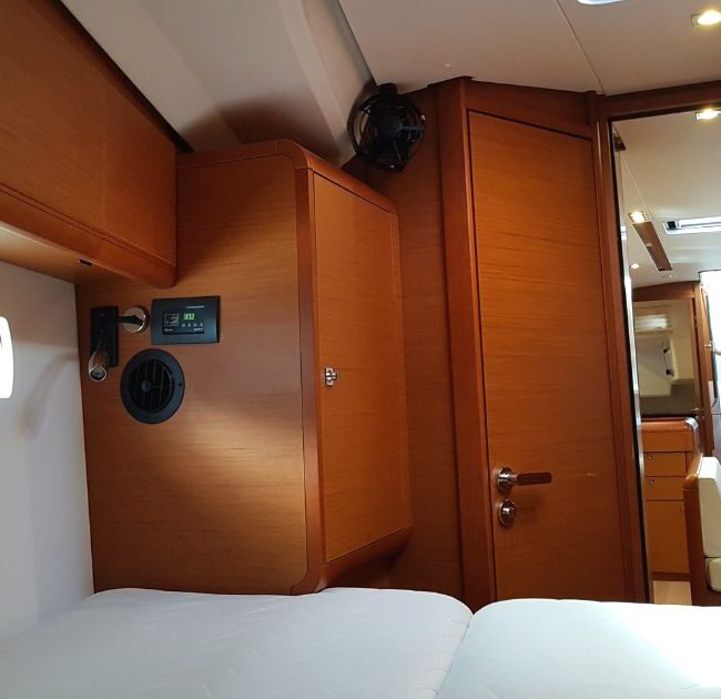 For more pleasant sailing and comfortable life onboard there is a special equipment such as Water maker(100lit/h), Bow thruster, Autopilot, Teak cockpit, Cockpit cushions, Coffee maker, Bathing platform, Inverter, Electric toilet, Solar panels.