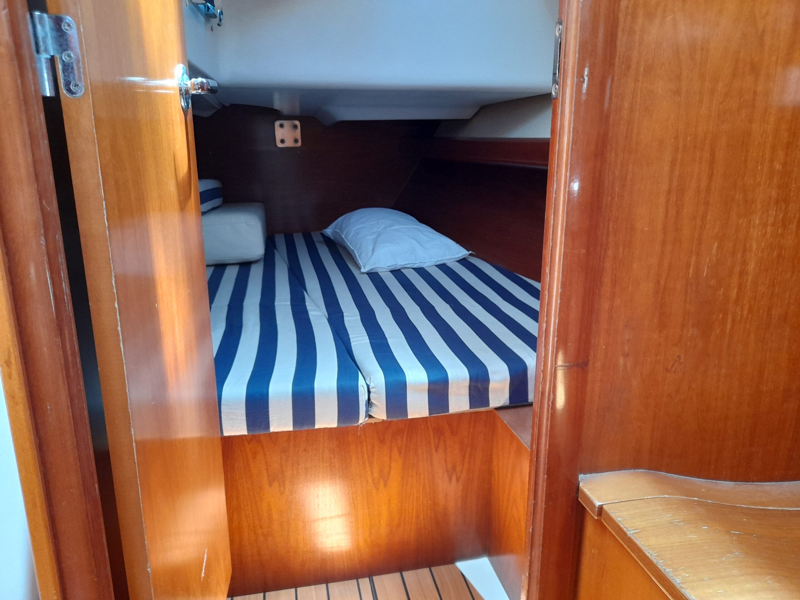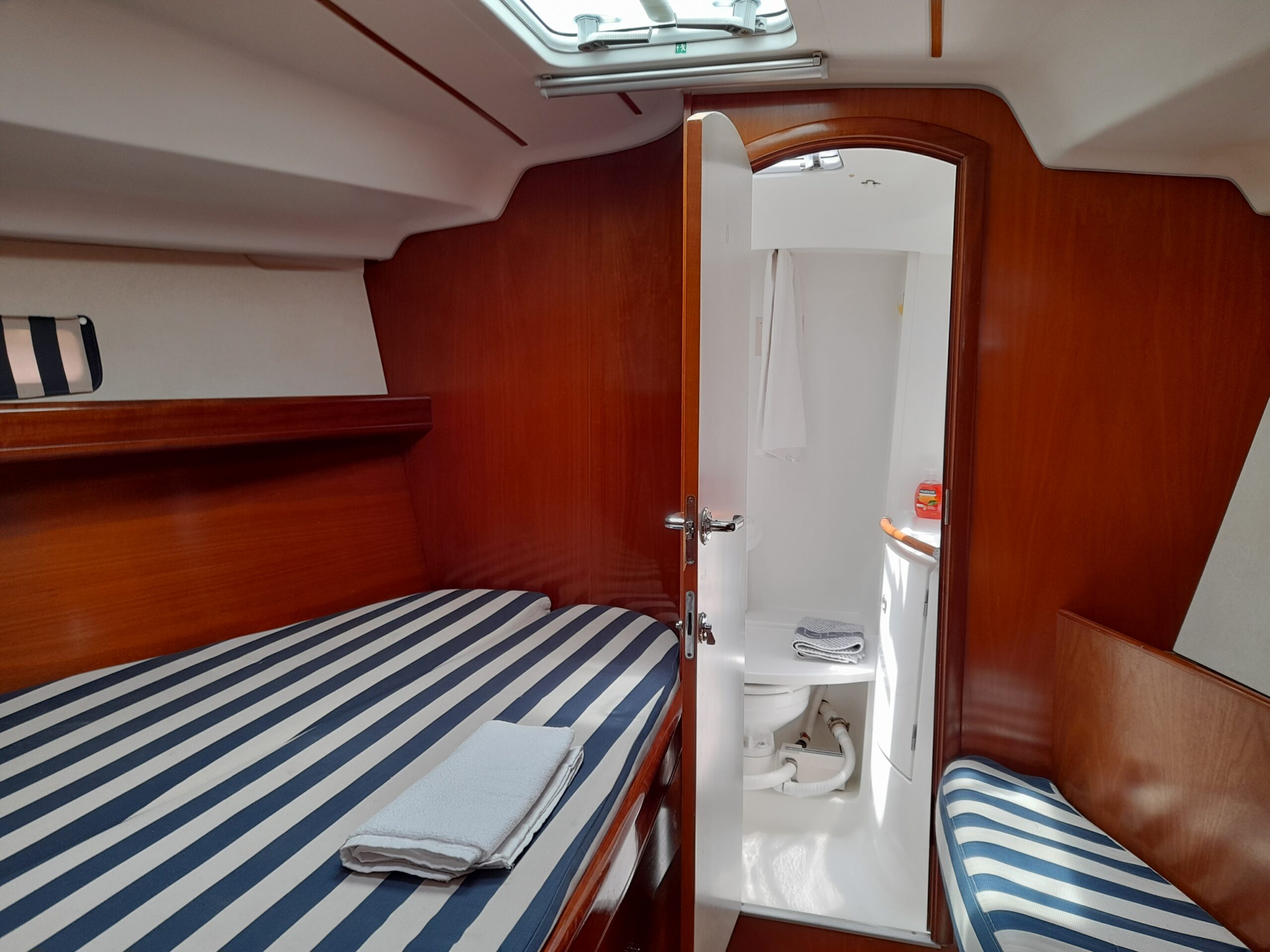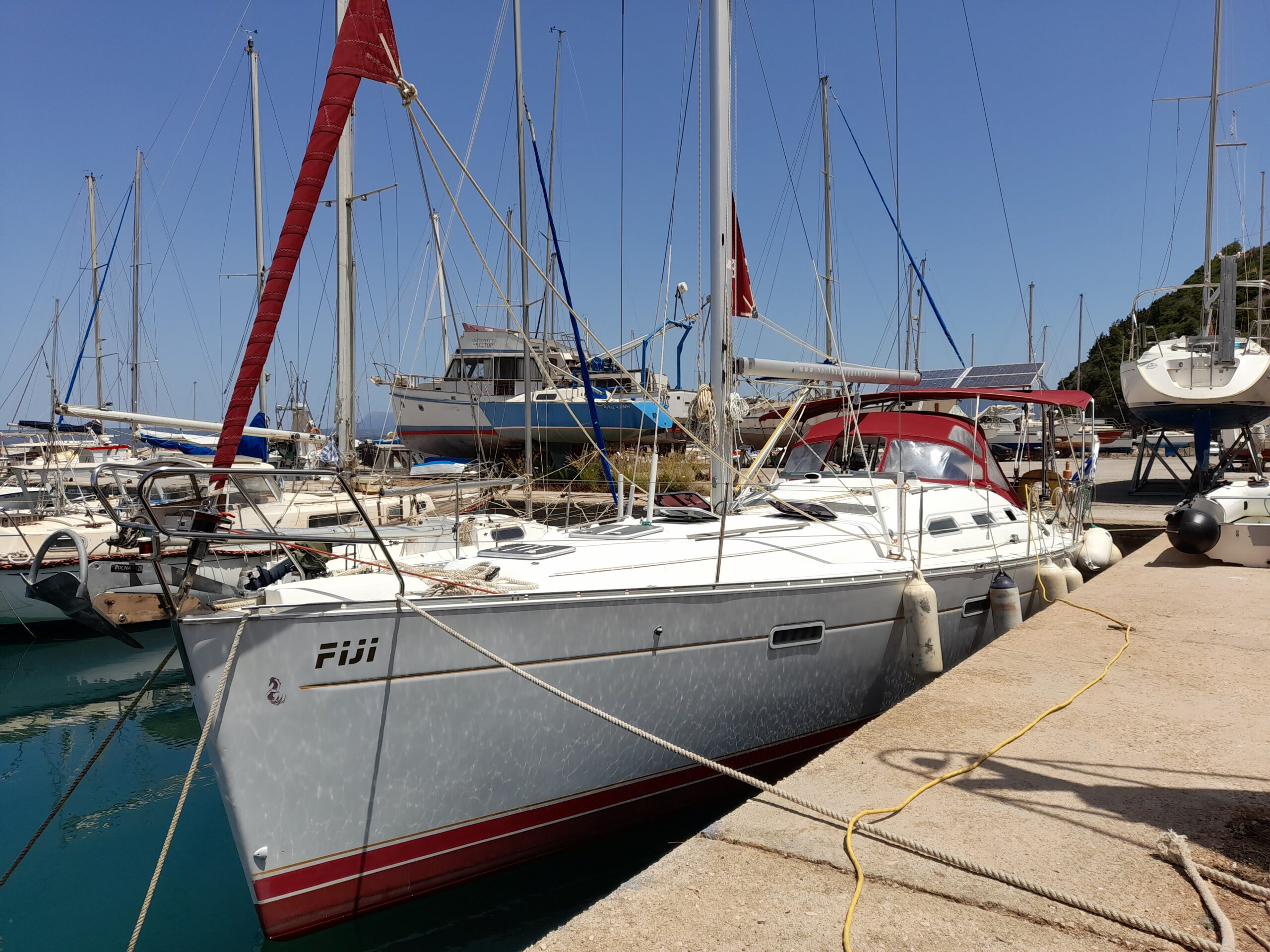 Our "Fiji" sailing boat is available for chartering for your sailing holidays in Messinia and is available with or without crew.The boat can accommodate up to 8 passengers and is ideal for those who are looking to charter a yacht for a sailing holiday with a small group of friends or families.The boat has 3 cabins, each with a double bed ,as well as 2 WC facilities.