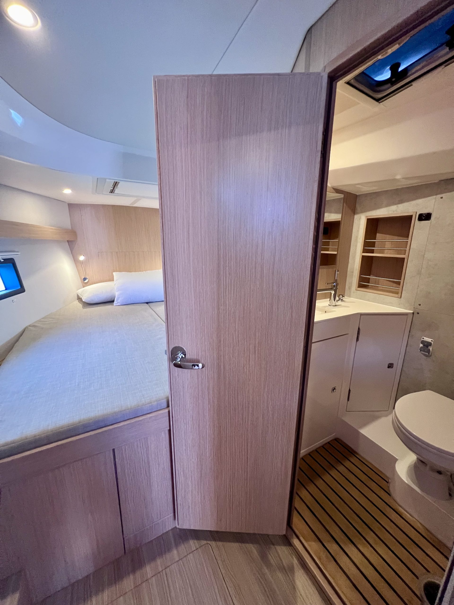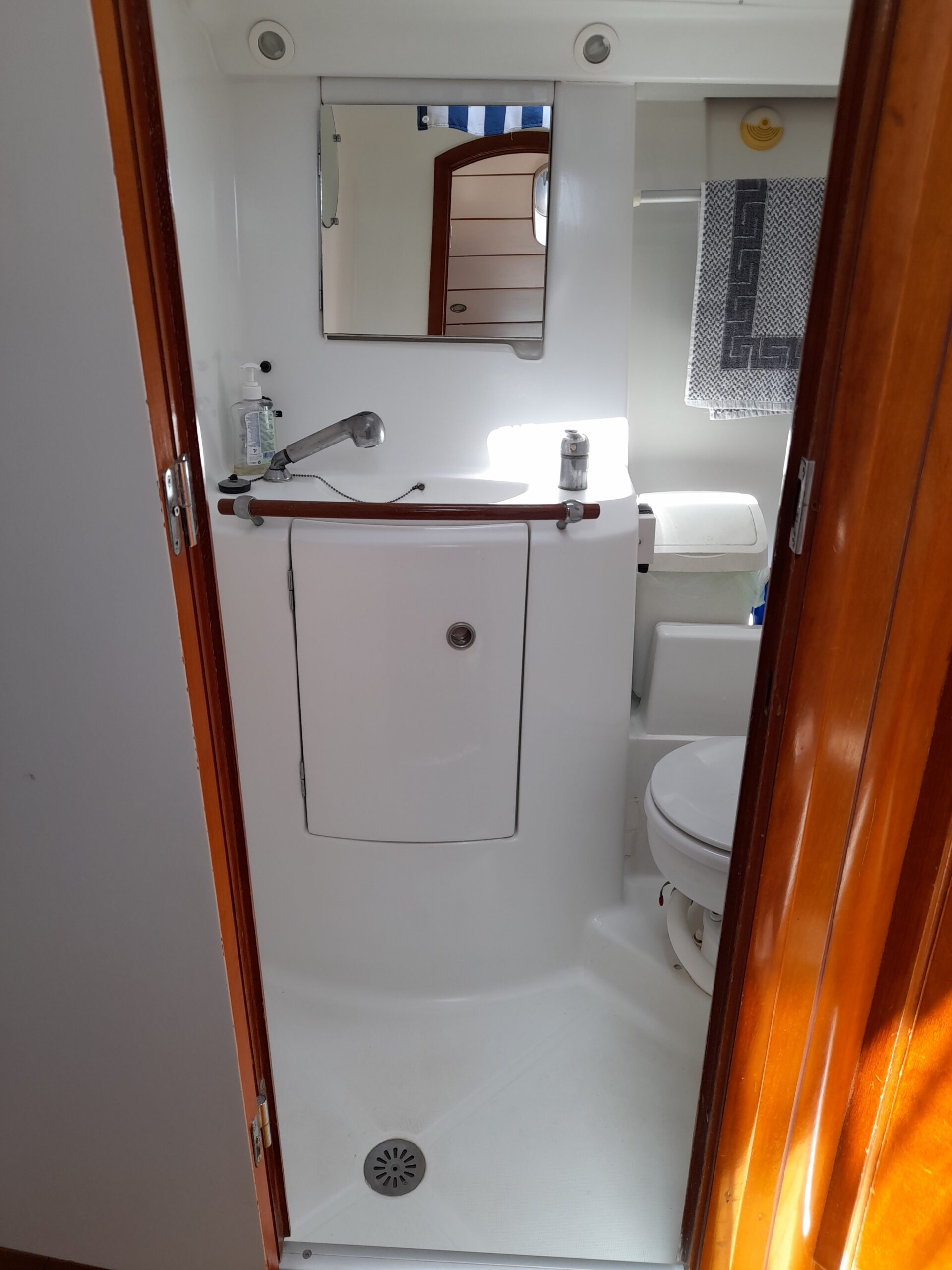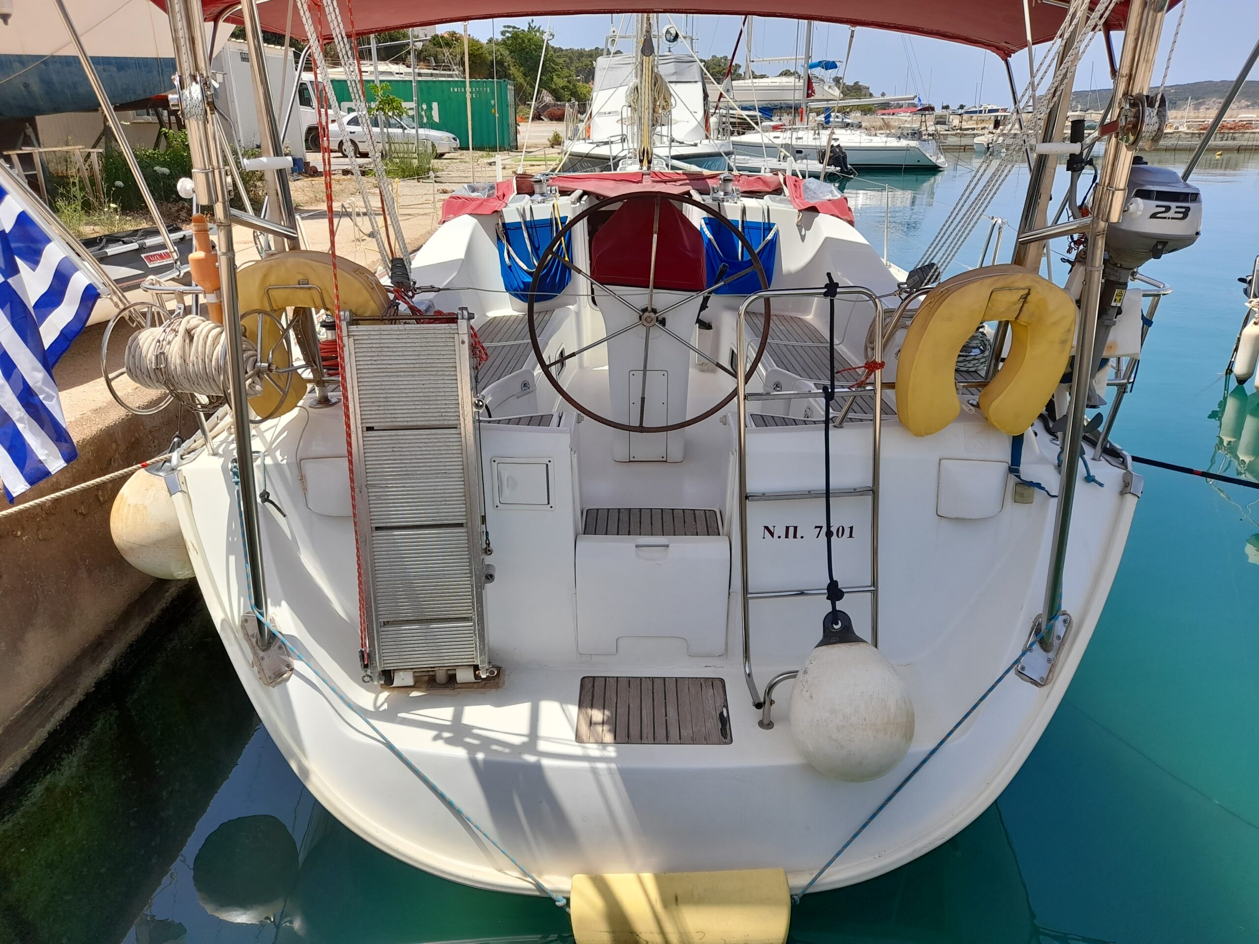 For more pleasant sailing and comfortable life onboard there is a special equipment such as Water maker(100lit/h), Bow thruster, Autopilot, Teak cockpit, Cockpit cushions, Coffee maker, Bathing platform, Inverter, Electric toilet, Solar panels.