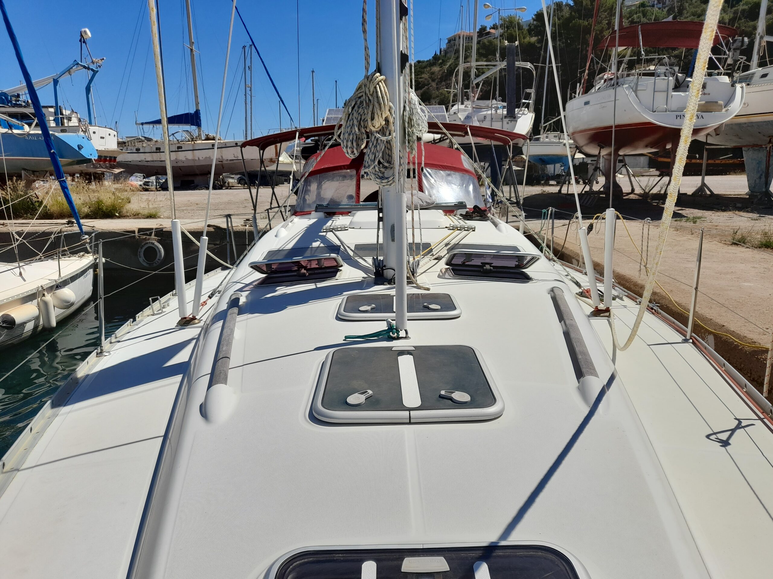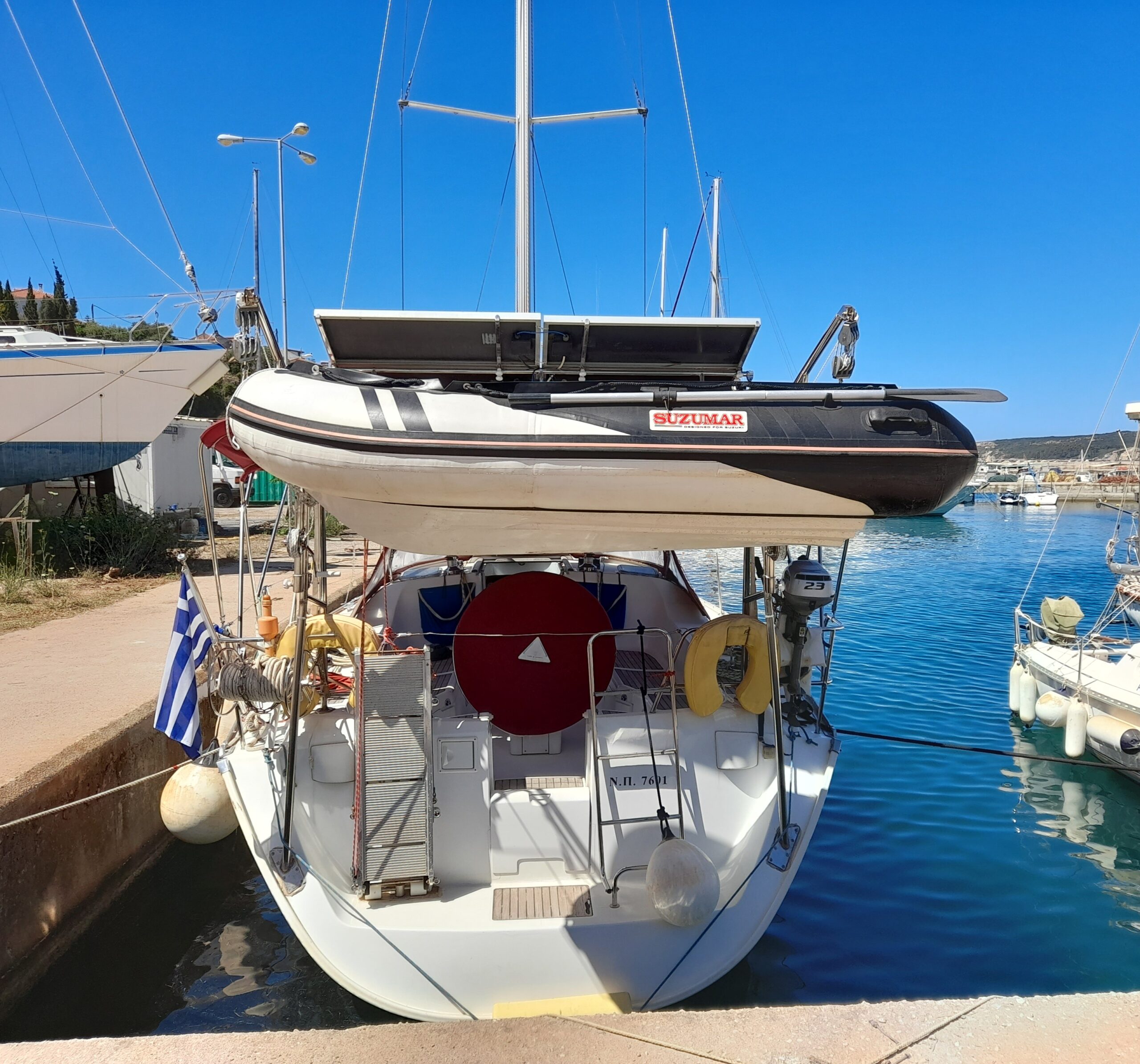 The technically well-equipped LUCIA contains Water maker(100lit/h), Autopilot, Bow thruster, Chart plotter, Electric toilet, Inverter, Radio-CD player, Refrigerator and Coffee maker. Furthermore this sailing yacht is equipped with Bimini, Cockpit cushions, Dinghy, Outboard engine, Solar Panels, Sprayhood and Stand up paddle.